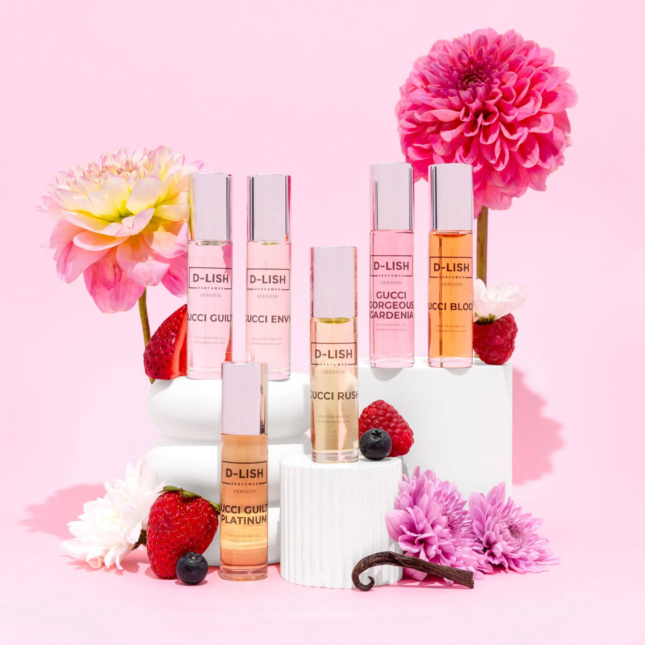 Our perfume oils are inspired by popular designer fragrances and are NOT to be confused with the originals. Dlish Perfumes would like to clarify that we have no affiliation with the brand manufacturer/designer. Perfume brand name trademarks and copyrights are properties of their respective manufacturers and/or designers. Our interpretation of these fragrances was created through chemical analysis and reproduction. The descriptions on our website are to give the customer an idea of scent character, not to mislead, confuse the customer or infringe on the manufacturers name and valuable trademark. We do not represent these products to be the original. Any references to brand names are made strictly for comparison purposes only.
