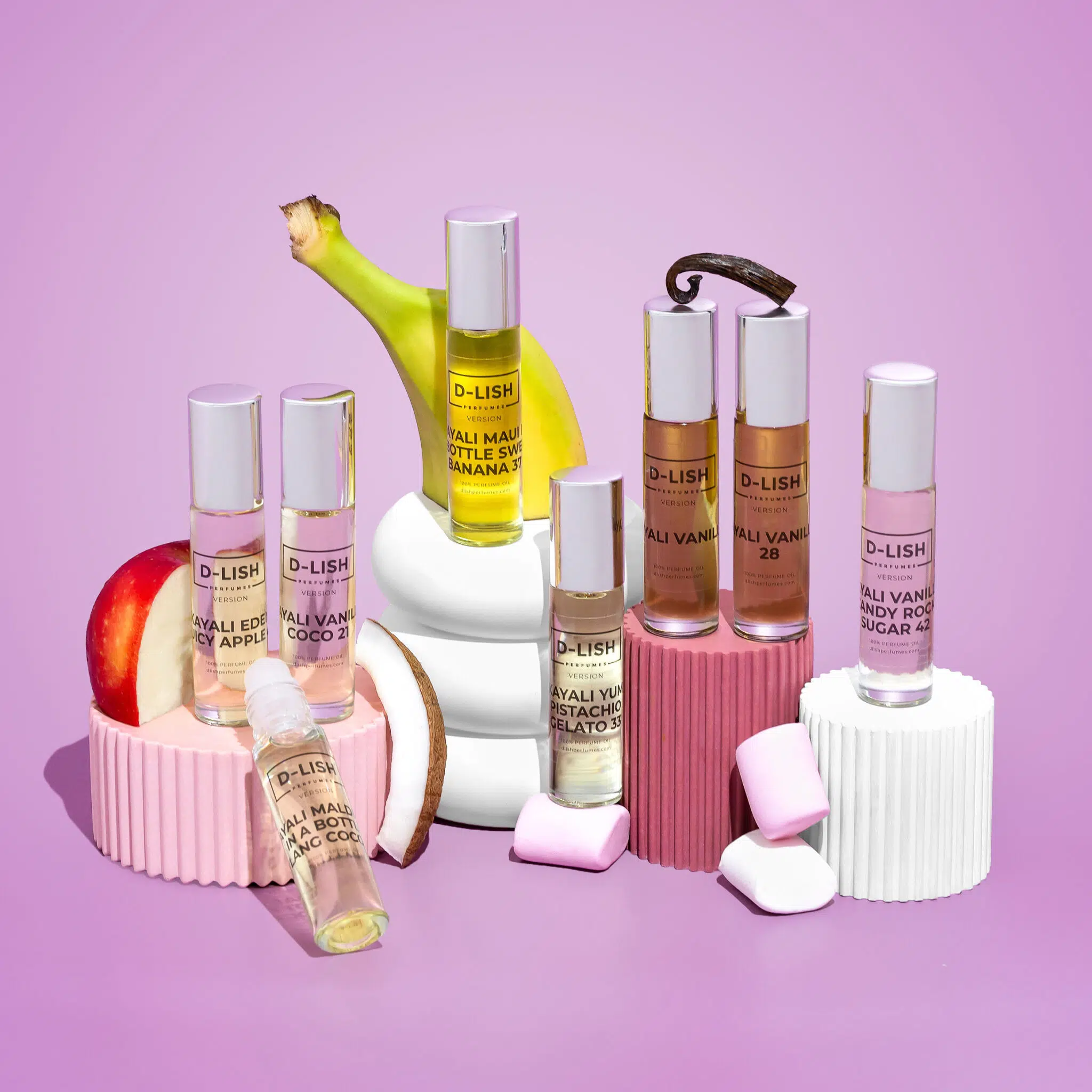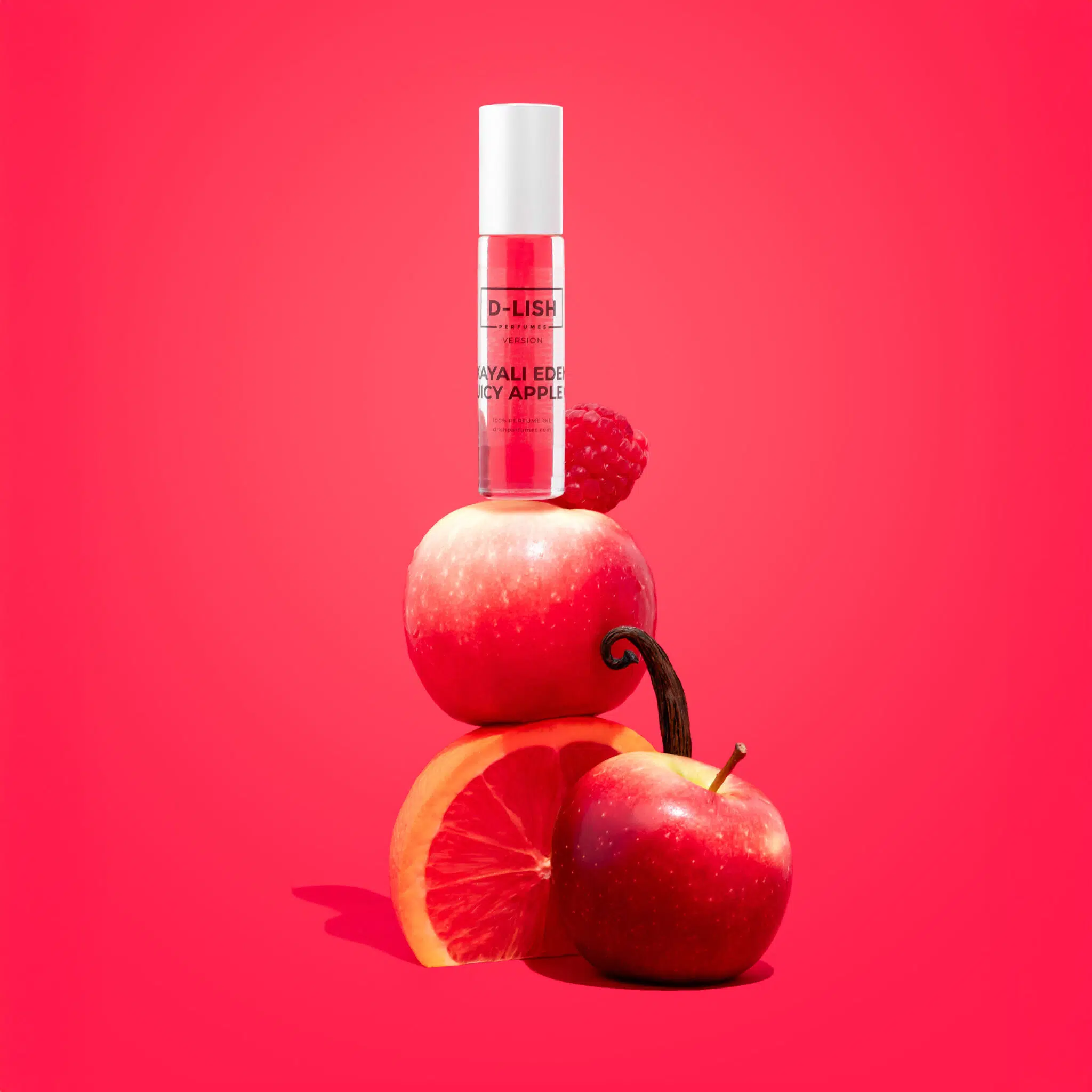 To layer, begin with Vanilla 28 (notes of vanilla orchid, tonka bean, amber woods and brown sugar). Then apply Eden Juicy Apple 01 (bursts of fresh red apple, blackcurrant, pink grapefruit, lychee and wild berries).